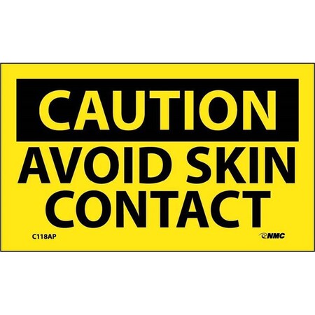 NMC C118AP OSHA Sign, Legend "CAUTION - AVOID SKIN CONTACT", 5" Length x 3" Height, Pressure Sensitive Vinyl, Black on Yellow (Pack of 5)