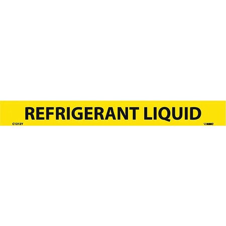 NMC C1212Y Pipemarkers Sign, Legend "Refrigerant Liquid", 9" Length x 1" Height, 1/2" Letter Size, Pressure Sensitive Vinyl, Black on Yellow (Pack of 25)