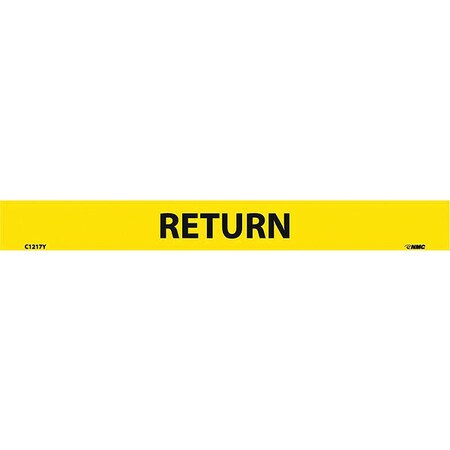 NMC C1217Y Pipemarkers Sign, Legend "Return", 9" Length x 1" Height, 1/2" Letter Size, Pressure Sensitive Vinyl, Black on Yellow (Pack of 25)