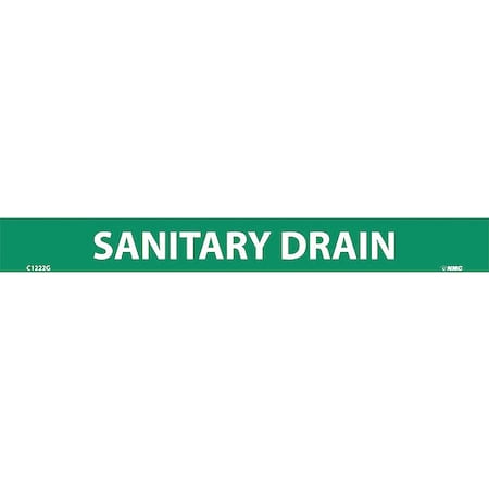 NMC C1222G Pipemarkers Sign, Legend "Sanitary Drain", 9" Length x 1" Height, 1/2" Letter Size, Pressure Sensitive Vinyl, White on Green (Pack of 25)