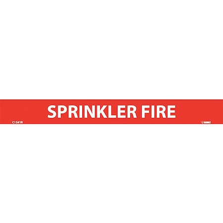 NMC C1241R Pipemarkers Sign, Legend "Sprinkler FIRE", 9" Length x 1" Height, 1/2" Letter Size, Pressure Sensitive Vinyl, White on Red (Pack of 25)