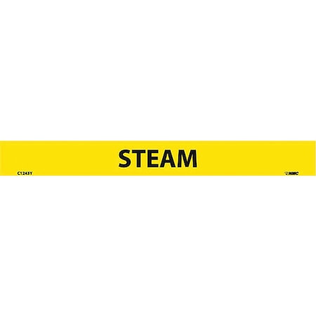 NMC C1243Y Pipemarkers Sign, Legend "STEAM", 9" Length x 1" Height, 1/2" Letter Size, Pressure Sensitive Vinyl, Black on Yellow (Pack of 25)