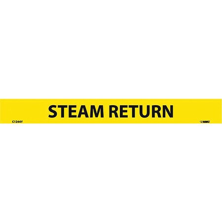 NMC C1244Y Pipemarkers Sign, Legend "STEAM Return", 9" Length x 1" Height, 1/2" Letter Size, Pressure Sensitive Vinyl, Black on Yellow (Pack of 25)