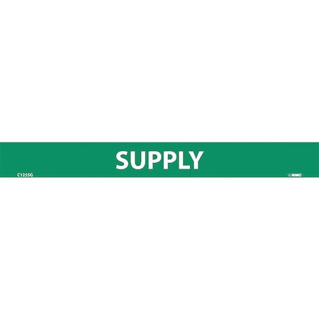NMC C1255G Pipemarkers Sign, Legend "Supply", 9" Length x 1" Height, 1/2" Letter Size, Pressure Sensitive Vinyl, White on Green (Pack of 25)
