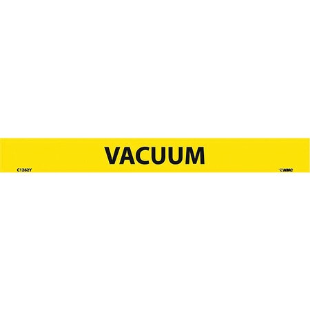NMC C1262Y Pipemarkers Sign, Legend "Vacuum", 9" Length x 1" Height, 1/2" Letter Size, Pressure Sensitive Vinyl, Black on Yellow (Pack of 25)