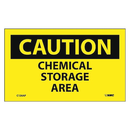 NMC C126AP OSHA Sign, Legend "CAUTION - CHEMICAL STORAGE AREA", 5" Length x 3" Height, Pressure Sensitive Vinyl, Black on Yellow (Pack of 5)