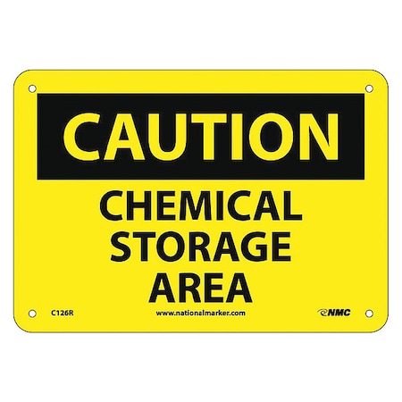 NMC C126R OSHA Sign, Legend "CAUTION - CHEMICAL STORAGE AREA", 10" Length x 7" Height, Rigid Plastic, Black on Yellow