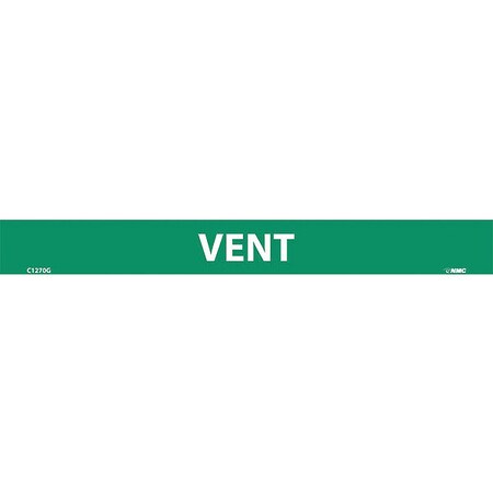 NMC C1270G Pipemarkers Sign, Legend "Vent", 9" Length x 1" Height, 1/2" Letter Size, Pressure Sensitive Vinyl, White on Green (Pack of 25)