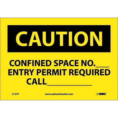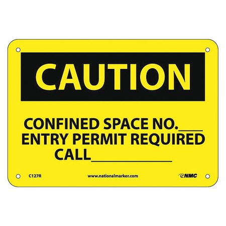 NMC C127R OSHA Sign, Legend "CAUTION - CONFINED SPACE NO.___ ENTRY PERMIT REQUIRED CALL___", 10" Length x 7" Height, Rigid Plastic, Black on Yellow