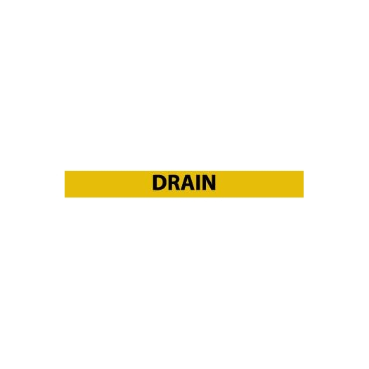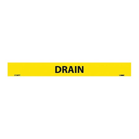 NMC C1287Y Pipemarkers Sign, Legend "Drain", 9" Length x 1" Height, 1/2" Letter Size, Pressure Sensitive Vinyl, Black on Yellow (Pack of 25)