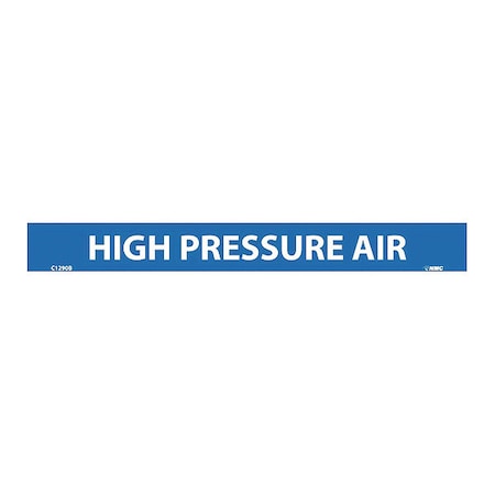 NMC C1290B Pipemarkers Sign, Legend "HIGH Pressure AIR", 9" Length x 1" Height, 1/2" Letter Size, Pressure Sensitive Vinyl, White on Blue (Pack of 25)