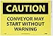 - Header "CAUTION" and legend "CONVEYOR MAY START WITHOUT WARNING"
