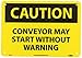 - Header "CAUTION" and legend "CONVEYOR MAY START WITHOUT WARNING"
