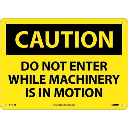 NMC C136PB OSHA Sign, Legend "CAUTION - DO NOT ENTER WHILE MACHINERY IS IN MOTION", 14" Length x 10" Height, Pressure Sensitive Vinyl, Black on Yellow