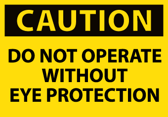 - Header "CAUTION" and legend "DO NOT OPERATE WITHOUT EYE PROTECTION"