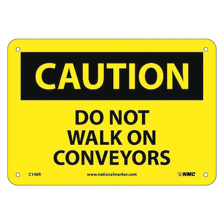 NMC C146R OSHA Sign, Legend "CAUTION - DO NOT WALK ON CONVEYORS", 10" Length x 7" Height, Rigid Plastic, Black on Yellow