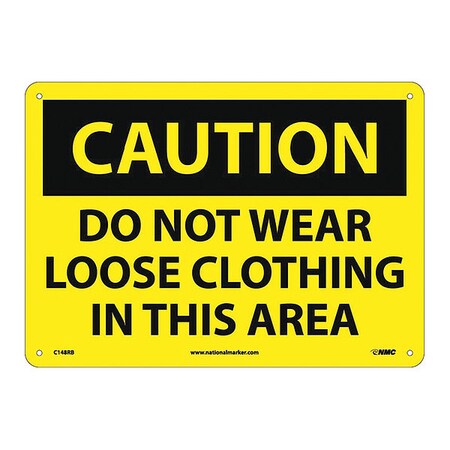 NMC C148RB OSHA Sign, Legend "CAUTION - DO NOT WEAR LOOSE CLOTHING IN THIS AREA", 14" Length x 10" Height, Rigid Plastic, Black on Yellow