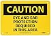 | Feature | Header "CAUTION" and legend "EYE AND EAR PROTECTION REQUIRED IN THIS AREA" |