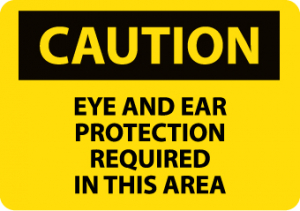 - Caution Signage: alerting people about the requirement of eye and ear protection in an area, this sign is mostly used at construction sites, industrial facilities to enforce personal safety standards