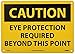 | Feature | Header "CAUTION" and legend "EYE PROTECTION REQUIRED BEYOND THIS POINT" |