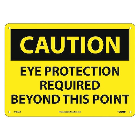 NMC C152AB OSHA Sign, Legend "CAUTION - EYE PROTECTION REQUIRED BEYOND THIS POINT", 14" Length x 10" Height, Aluminum, Black on Yellow