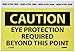 | Feature | Header "CAUTION" and legend "EYE PROTECTION REQUIRED BEYOND THIS POINT" |
