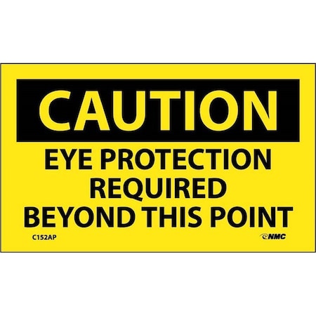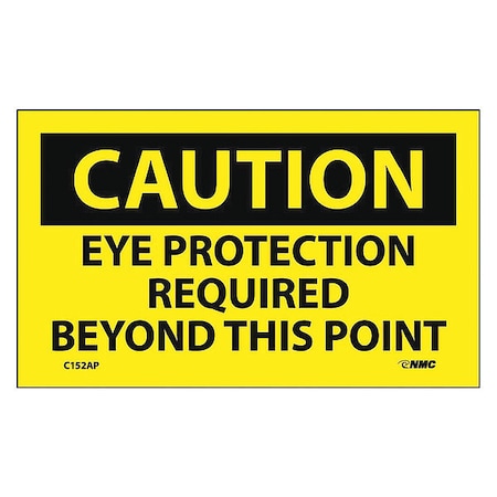 NMC C152AP OSHA Sign, Legend "CAUTION - EYE PROTECTION REQUIRED BEYOND THIS POINT", 5" Length x 3" Height, Pressure Sensitive Vinyl, Black on Yellow (Pack of 5)