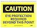 | Feature | Header "CAUTION" and legend "EYE PROTECTION REQUIRED BEYOND THIS POINT" |