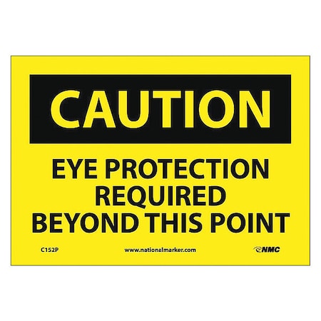 NMC C152P OSHA Sign, Legend "CAUTION - EYE PROTECTION REQUIRED BEYOND THIS POINT", 10" Length x 7" Height, Pressure Sensitive Vinyl, Black on Yellow