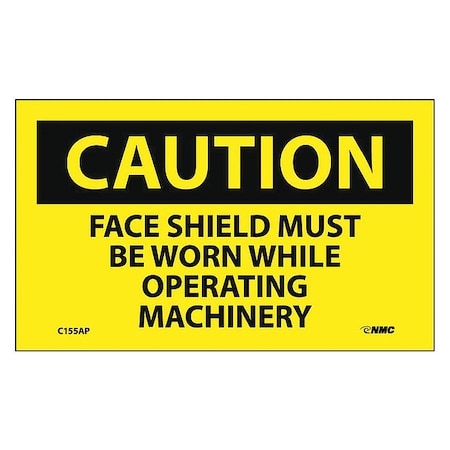 NMC C155AP OSHA Sign, Legend "CAUTION - FACE SHIELD MUST BE WORN WHILE OPERATING MACHINERY", 5" Length x 3" Height, Pressure Sensitive Vinyl, Black on Yellow (Pack of 5)
