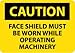 - Visibility: the legend “CAUTION - FACE SHIELD MUST BE WORN WHILE OPERATING MACHINERY” is printed in bold and legible text to ensure better readability