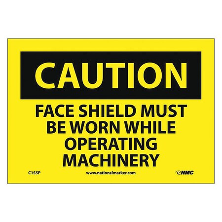 NMC C155P OSHA Sign, Legend "CAUTION - FACE SHIELD MUST BE WORN WHILE OPERATING MACHINERY", 10" Length x 7" Height, Pressure Sensitive Vinyl, Black on Yellow