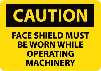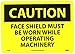 - Visibility: the legend “CAUTION - FACE SHIELD MUST BE WORN WHILE OPERATING MACHINERY” is printed in bold and legible text to ensure better readability