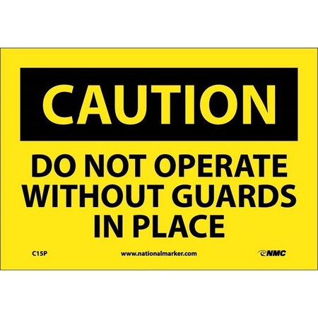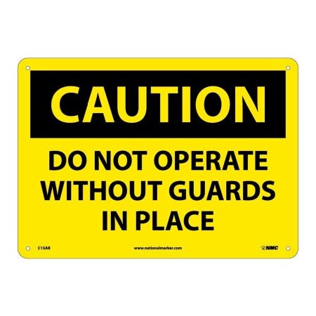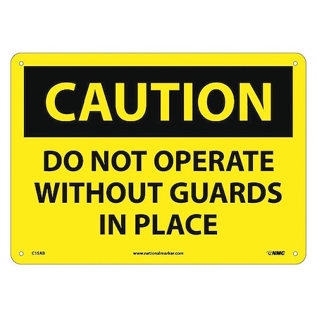 NMC C15AB OSHA Sign, Legend "CAUTION - DO NOT OPERATE WITHOUT GUARDS IN PLACE", 14" Length x 10" Height, Aluminum, Black on Yellow