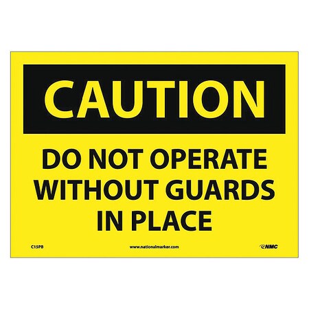 NMC C15PB OSHA Sign, Legend "CAUTION - DO NOT OPERATE WITHOUT GUARDS IN PLACE", 14" Length x 10" Height, Pressure Sensitive Vinyl, Black on Yellow