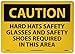 - Visibility: the legend “CAUTION - HARD HATS, SAFETY GLASSES, SAFETY SHOES REQUIRED IN THIS AREA” is printed in bold and legible text to ensure better readability