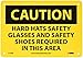 | Feature | Header "CAUTION" and legend "HARD HATS SAFETY GLASSES AND SAFETY SHOES REQUIRED IN THIS AREA" |