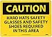 - Visibility: the legend “CAUTION - HARD HATS, SAFETY GLASSES, SAFETY SHOES REQUIRED IN THIS AREA” is printed in bold and legible text to ensure better readability