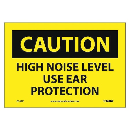 NMC C161P OSHA Sign, Legend "CAUTION - HIGH NOISE LEVEL USE EAR PROTECTION", 10" Length x 7" Height, Pressure Sensitive Vinyl, Black on Yellow