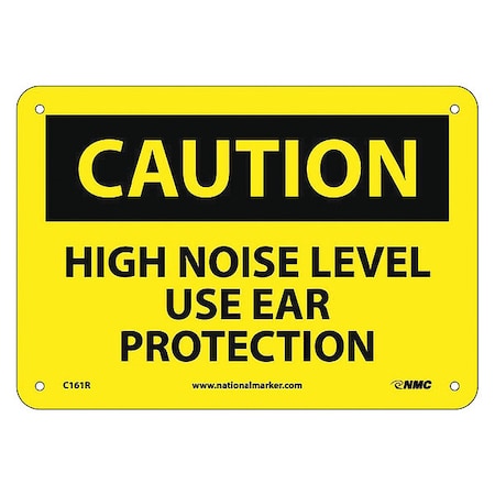 NMC C161R OSHA Sign, Legend "CAUTION - HIGH NOISE LEVEL USE EAR PROTECTION", 10" Length x 7" Height, Rigid Plastic, Black on Yellow