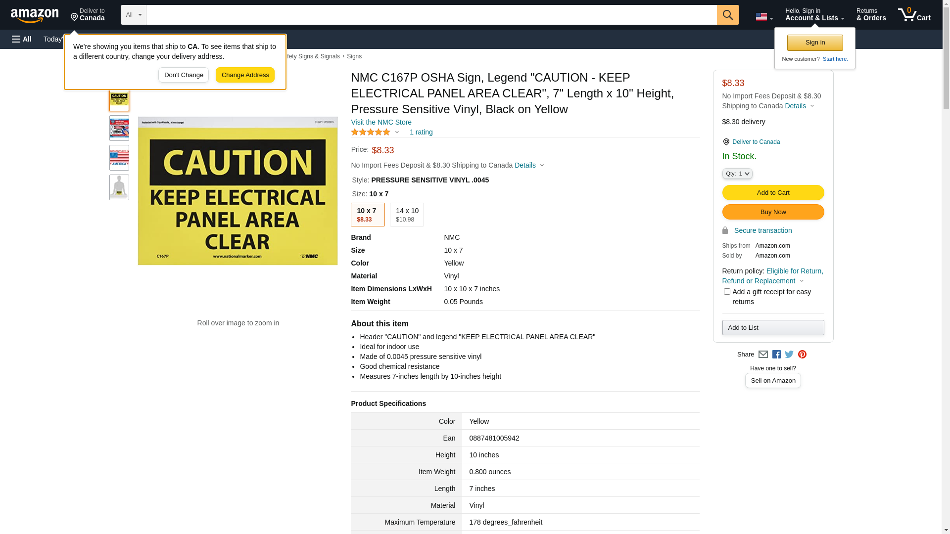 NMC C167P OSHA Sign, Legend "CAUTION - KEEP ELECTRICAL PANEL AREA CLEAR", 7" Length x 10" Height, Pressure Sensitive Vinyl, Black on Yellow