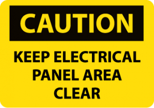 - Header "CAUTION" and legend "KEEP ELECTRICAL PANEL AREA CLEAR"