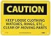 - Header "CAUTION" and legend "KEEP LOOSE CLOTHING WATCHES RINGS ETC., CLEAR OF MOVING PARTS"