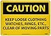 - Header "CAUTION" and legend "KEEP LOOSE CLOTHING WATCHES RINGS ETC., CLEAR OF MOVING PARTS"