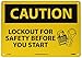 | Feature | Header "CAUTION" and legend "LOCKOUT FOR SAFETY BEFORE YOU START" with Graphic |