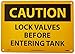 - Header "CAUTION" and legend "LOCK VALVES BEFORE ENTERING TANKS"