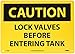 - Header "CAUTION" and legend "LOCK VALVES BEFORE ENTERING TANKS"