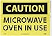 - Header "CAUTION" and legend "MICROWAVE OVEN IN USE"