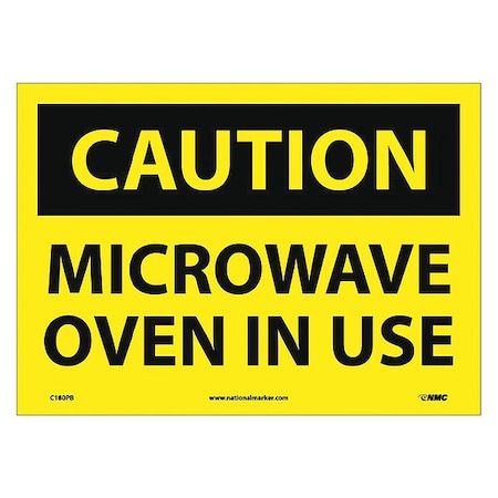 NMC C180PB OSHA Sign, Legend "CAUTION - MICROWAVE OVEN IN USE", 14" Length x 10" Height, Pressure Sensitive Vinyl, Black on Yellow