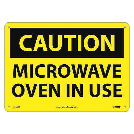 NMC C180RB OSHA Sign, Legend "CAUTION - MICROWAVE OVEN IN USE", 14" Length x 10" Height, Rigid Plastic, Black on Yellow